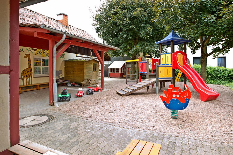 Der Kindergarten in Ehringen wurde im Jahr 1972 in einem alten Fachwerkhaus eröffnet. Neben den zwei Gruppenräumen befindet sich im Erdgeschoß ein Waschraum, ein Ruheraum, eine Küche und die Garderobe.